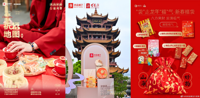 “非遗”“国潮”的风吹到了休闲食品业。1月,良品铺子与世界文化遗产五台山联名,零食礼盒搭配限量版五台山联名琉璃手串,上线销售额破百万;9月,良品铺子又与武汉著名景点黄鹤楼联动,推出限量版黄鹤楼联名款月饼系列礼盒;洽洽也在今年与上海公共艺术协同创新中心推出了“东方佳仁”非遗礼盒,并且联名《山海经》IP推出龙年限定食品福袋。中华传统与美食结合,是零食巨头们跨界的新选择。