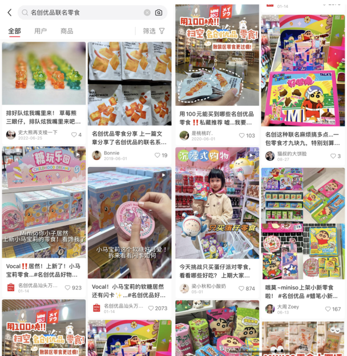 如今,抖音、小红书等主流社交平台上,“亲测!名创优品13款零食试吃”“名创优品哪些零食值得买?学生党安利不踩雷”等系列短视频和图文内容层出不穷。名创优品推出的迪士尼IP软糖、三丽鸥IP联名系列糖果零食、宝可梦IP联名系列乐达杯等各色零食,在消费群体中收获无数好评,今年上新的内含“闪卡”的小马宝莉软糖,还引发了消费者的“拆卡”热潮。